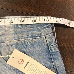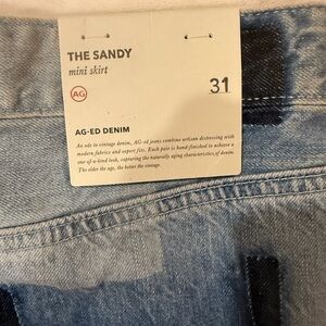 Brand new with tags AG Adriano Goldschmied “Sandy” denim mini skirt in premium AG-ED denim. This modern mini features a flattering straight silhouette, subtle panel detailing, and a raw frayed hem for an effortless, lived-in look. High-quality structured denim with no stretch — classic AG craftsmanship.