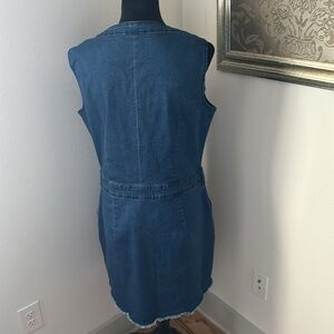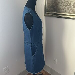 Jeans sleeveless buttoned front denim frayed hem mini dress Sz L