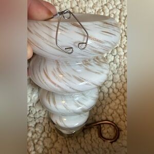 White and Gold Swirl hand blown glass hanging Ornament