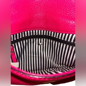 Vibrant pink crossbody bag. Sleek design with front zipper. Perfect for everyday use.
