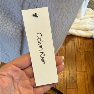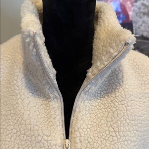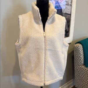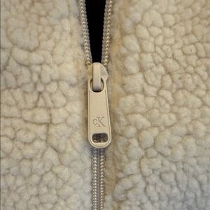 Soft cream colored full zip vest from Calvin Klein. Lightly lined. High collar when zipped fully. Two hidden pockets on side. NWT. Size large.