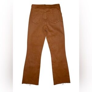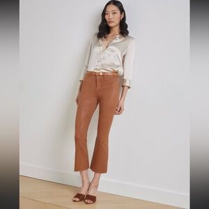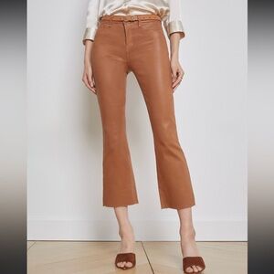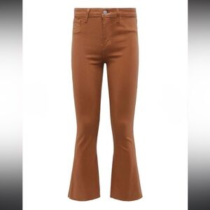 Keywords: L’Agence Kendra jeans, coated denim, crop flare pants, high rise jeans, faux leather look, Java brown, women’s size 27, designer denim