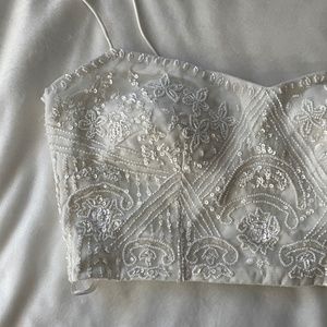 NWT Adrianna Papell Embellished Crop Ivory TOP ONLY [SZ 8 ]