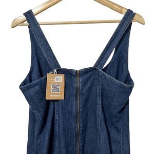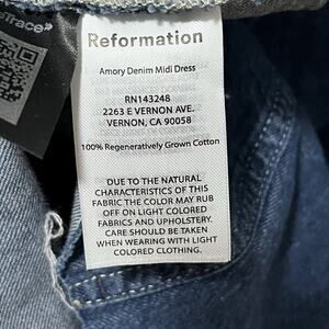 Reformation Jeans Amory Denim Midi Dress Size 10 Caspian Blue Raw Hem NEW