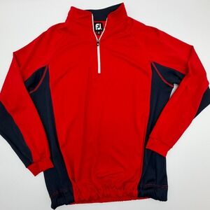 FootJoy Mens Quarter Zip Golf Pullover Red Navy Blue Performance Size M