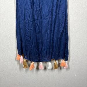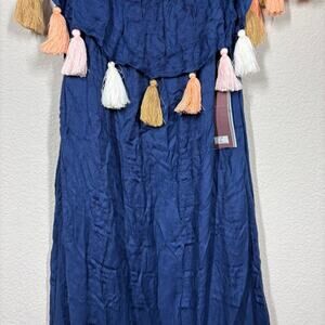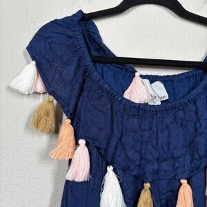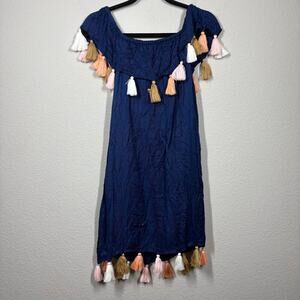 Chloe Oliver XS Palm Beach Tassel Off The Shoulder Summer Boho Dress Navy Rayon