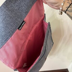 Herschel city backpack. Gray w/ brown magnetic strap.