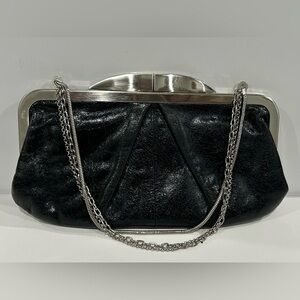 HOBO Black Leather Clutch w/ Silver Chain Strap
