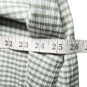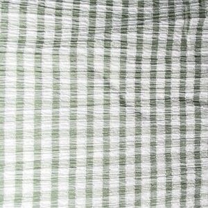 Pattern: It features a classic gingham check print in white and a soft, muted green.