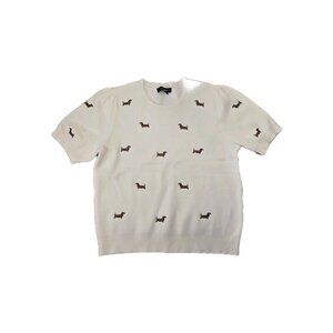 New Cream CALLIGRAPHIE W/ Dachshund Weiner Polyester Dog Mid Sleeve Shirt Sweater