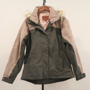 Cripple Creek Suede Fringe Leather Jacket Tan size XL. Turquoise embellishments on the front and back, snaps down the front and sleeves. Approx measurements Length 22.5", Armpit to Armpit 21", Sleeve 24", Bottom width 20" Good pre-owned condition but may need to be cleaned, priced accordingly - multiple blemishes, collar, sleeves and body see pictures.
