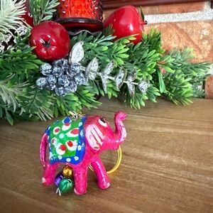 Vintage India Handcrafted Wooden Artisan Colorful Elephant Keychain
