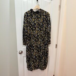 Vintage Masai Clothing Company, Danish design popular in Scandinavia. Black with yellow floral print dress or long tunic with pockets. Lightweight and easy wearing, in great condition! Size XL
