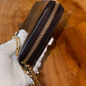 It comes with a 47-inch unbranded gold chain, allowing you to wear it as a crossbody purse, or you can easily remove the chain and use it strictly as a wallet.