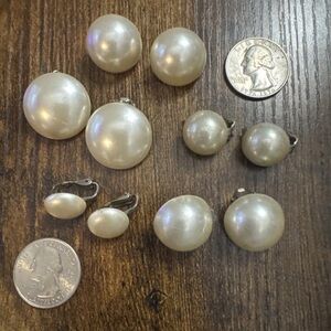 Vintage Lot of 5 Faux Pearl Clip on Earrings Round Circle White Cocktail Fashion