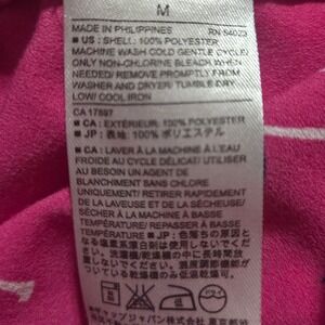 Banana Republic sleeveless blouse showcases a vibrant fuchsia pink hue adorned with a striking navy and white bamboo leaf print. Designed with a flattering V-neckline on both the front and back, this top features a cinched drawstring waist that allows for a customizable peplum-style silhouette. Crafted from a lightweight, smooth polyester fabric, it offers a polished look suitable for office wear or weekend outings. The airy sleeveless cut and bold botanical pattern make it a versatile piece for layering or wearing on its own.