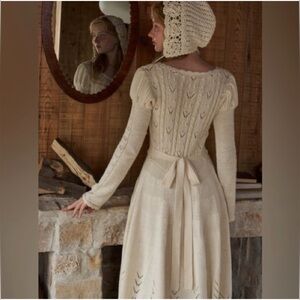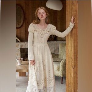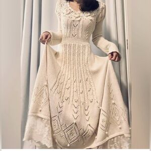 Lacemade Collection Ivory Cable Knit Midi Dress Crochet Lace Cottagecore Medium