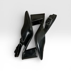 Step out in style with these elegant black slingback heels. Perfect for any occasion, these shoes offer both comfort and sophistication.