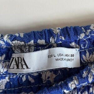 Chic A-line skirt with floral pattern. Features vibrant blue and white design. Ideal for casual outings.