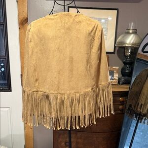 Elevate your style with this chic tan leather jacket, featuring elegant fringe details. Perfect for adding a touch of sophistication to any outfit.