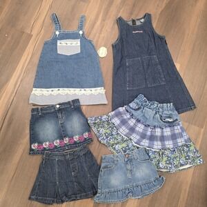 Girls Denim Jean Dress Jumper Skirt Lot Mixed Vintage To Modern Size 3T - 6X