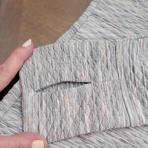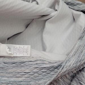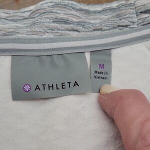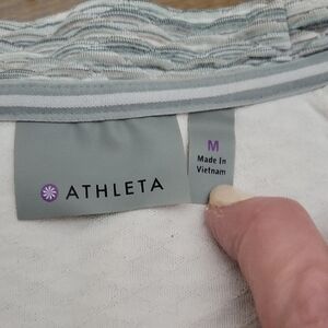 Chic Athleta top with gray and white design. Ideal for everyday comfort.