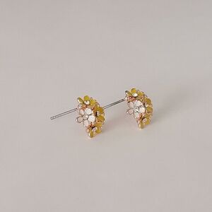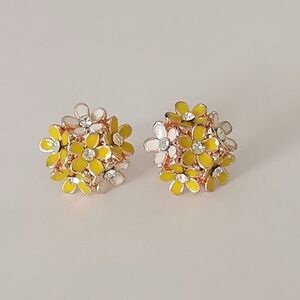 Yellow flower bouquet enamel crystals stud earrings 🆕