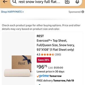 Rest Evercool cooling Flat sheet NEW FULL/queen snow ivory Cream Pillow $97