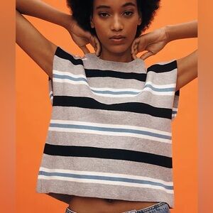 The Noah Muscle Tank Sweater by Maeve size S Stripes Blue Black White
