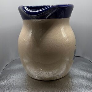 Charming ceramic pitcher featuring a blue and cream color scheme with a delightful rooster design. Perfect for adding a rustic touch to your home decor.