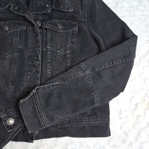 Stylish and versatile black denim jacket by Free People. Perfect for layering and adding a chic touch to any outfit.