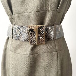 Brown and black wide snakeskin faux leather belt with Goldtone hardware