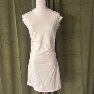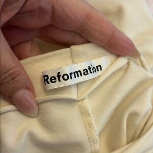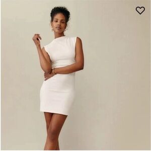 Elegant white mini dress by Reformation. Features a sleeveless design. Perfect for a stylish outing.