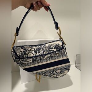 Christian Dior Canvas Embroidered Toile de Jouy Saddle shoulder Bag Blue