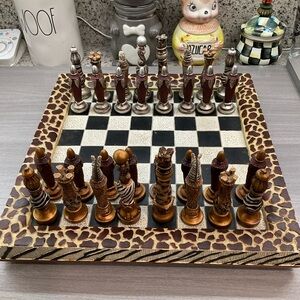 CHEETAH AND ZEBRA CHESS BOARD AND PIECES