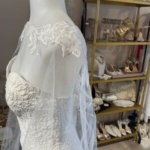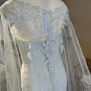 Beaded lace tulle bridal cape