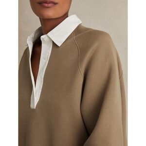 REISS Gaia Camel Tan Interlock Contrast Collar Sweater Top Womens M