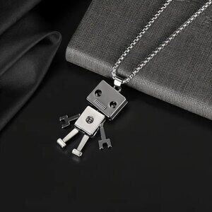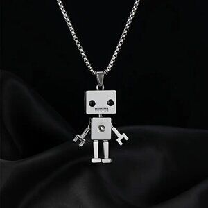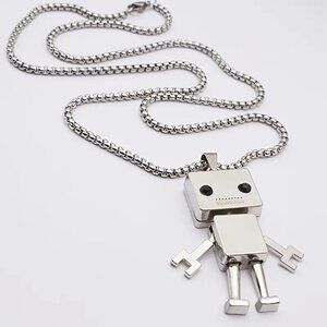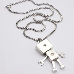 Silver Robot Pendant Necklace Cute Cartoon Toy Figure Geek Gamer Gift Unisex