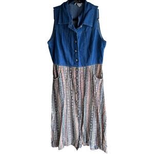 Vintage 90s Vanessa Women's Sleeveless Denim Midi Cottagecore Shirt Dress LARGE
