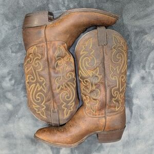 Justin 2253 Classic Cowboy Western Pull On Brown Leather Men’s Boots Size 9