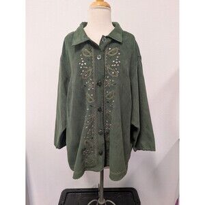 Vintage Erika Forest Green Faux Suede Top sz 3X Beaded Gold Trim Feminine Retro