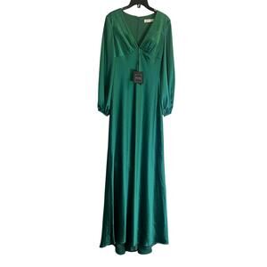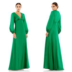 Mac Duggal Charmeuse Empire Waist Blouson Sleeve Gown Maxi Dress