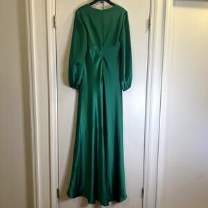 Mac Duggal Charmeuse Empire Waist Blouson Gown Maxi Dress 55693 emerald green 4