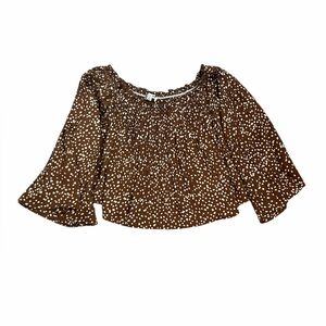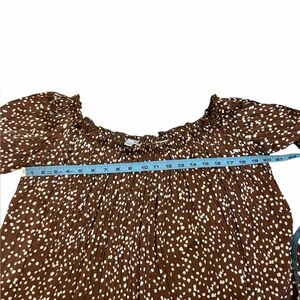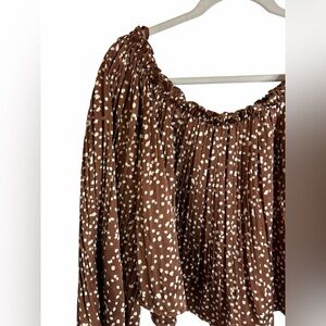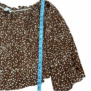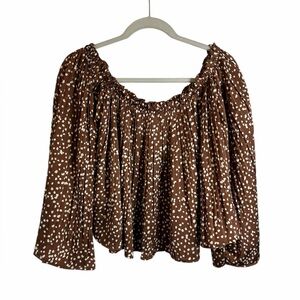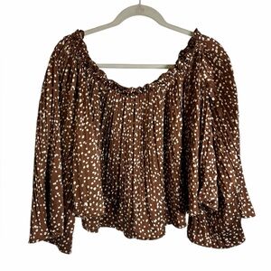 She + Sky Brown Polka Dot Off the Shoulder Silky Blouse Romantic Women’s Large