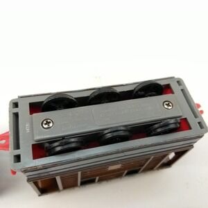 Vintage metal Ertl brand train cars. The red hooks are made of plastic. Wear present. Wear to include plastic scrapes, paint peel off, discoloration, scuffs, marks, sticker wear off. Please review all images.