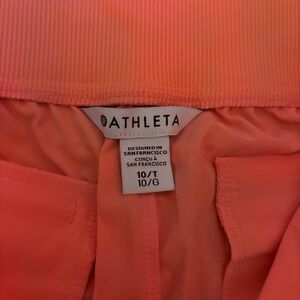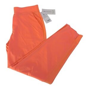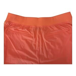 New Athleta mid rise pants in a bold coral hue. They are a lightweight fabric with a semi fitted design. Perfect for casual outings or active days.