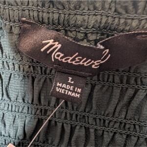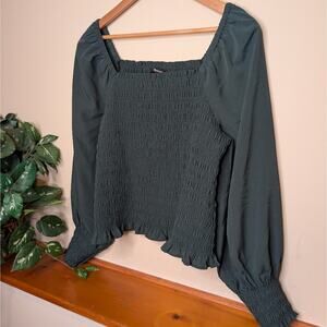 Madewell Green Smocked Square Neck Blouse Long Sleeve Women’s Large NWT
