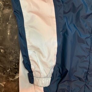 Normal wear-Discoloration on the white part of the jacket, couple of picks on the liner, discoloration on sleeve, graphic on sleeve has faded