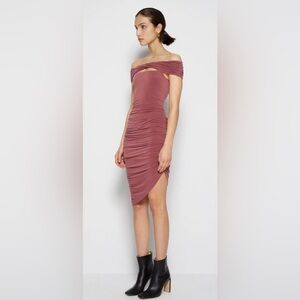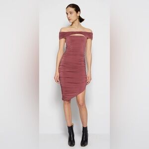 This is such a gorgeous and sexy bodycon dress from Jonathan Simkai Standard. In “plum,” (a shade of dusty rose), this slinky dress features off the shoulder styling, a cutout above the bust, ruching throughout the body of the dress, and an asymmetrical hem. Size L. New without tags- in perfect condition with no visible flaws. Perfect for a cocktail party, wedding guest, homecoming, sorority function, and more! Sold out on the Simkhai website. Originally retailed for $395.
