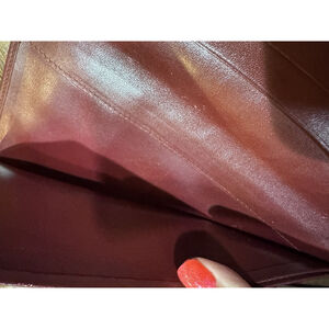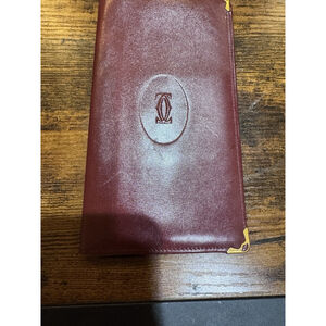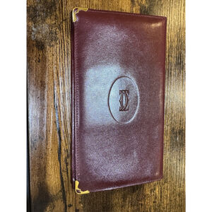 The Cartier Must de Cartier Long Wallet is a stylish and elegant accessory for women, crafted from luxurious burgundy leather with gold hardware accents. This vintage piece features the iconic Must de Cartier logo and is perfect for keeping your credit cards, bills, and cash organized in a spacious bifold design. Made in France by the prestigious brand Cartier, this wallet exudes sophisticated charm and timeless appeal. A slim bifold long wallet crafted from bordeaux leather featuring the embossed double C logo.7.2”x4” approximately in very good condition. No tarnish on gold hardware noted,no peeling and the leather is in beautiful condition.